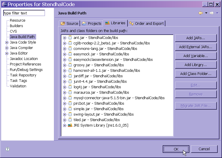 At this point, you have finished setting up your classpath, so click OK.