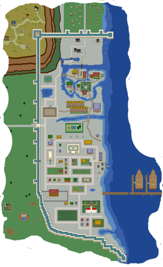 The north part of Ados city features a park where children play, a bakery producing some fines <item>pie|pies</item> and a spooky Haunted House, with a resident ghost, <npc>Carena</npc>. There is also a smithy which produces <item>gold bar|gold bars</item> and <item>mithril bar|mithril bars</item>, a bank and a bar with a rather attractive couple of bartenders.